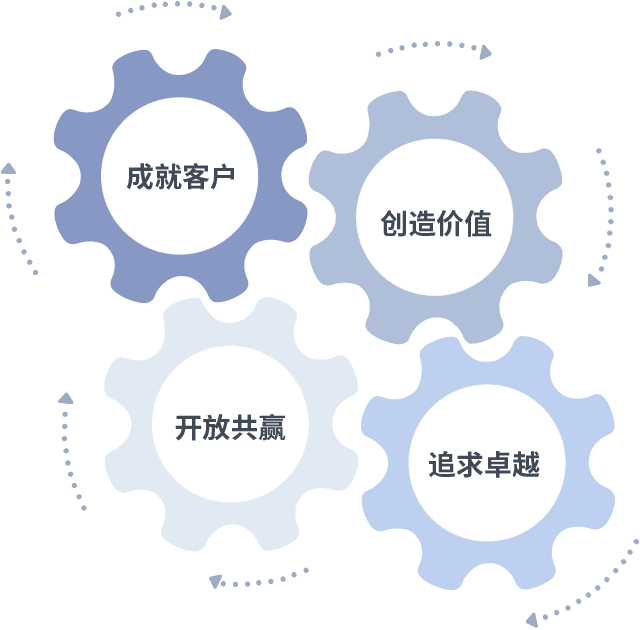 成就客户是一切决策的出发点,创造价值是衡量所有工作的标准,追求卓越是拉斯维加斯9888做事做人的态度,开放共赢是拉斯维加斯9888的格局也是最终的结果。价值观的齿轮环环相扣,推动着组织里的每个人不断向前。